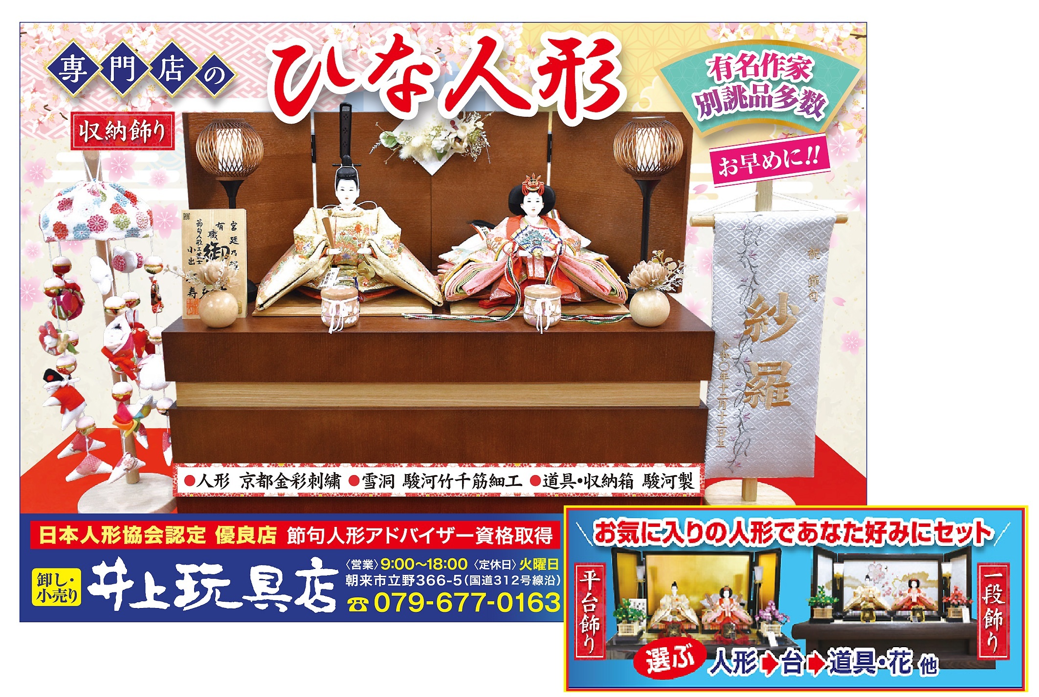 井上オリジナル 別誂ひな人形たくさん展示しています。見る価値あり!!。