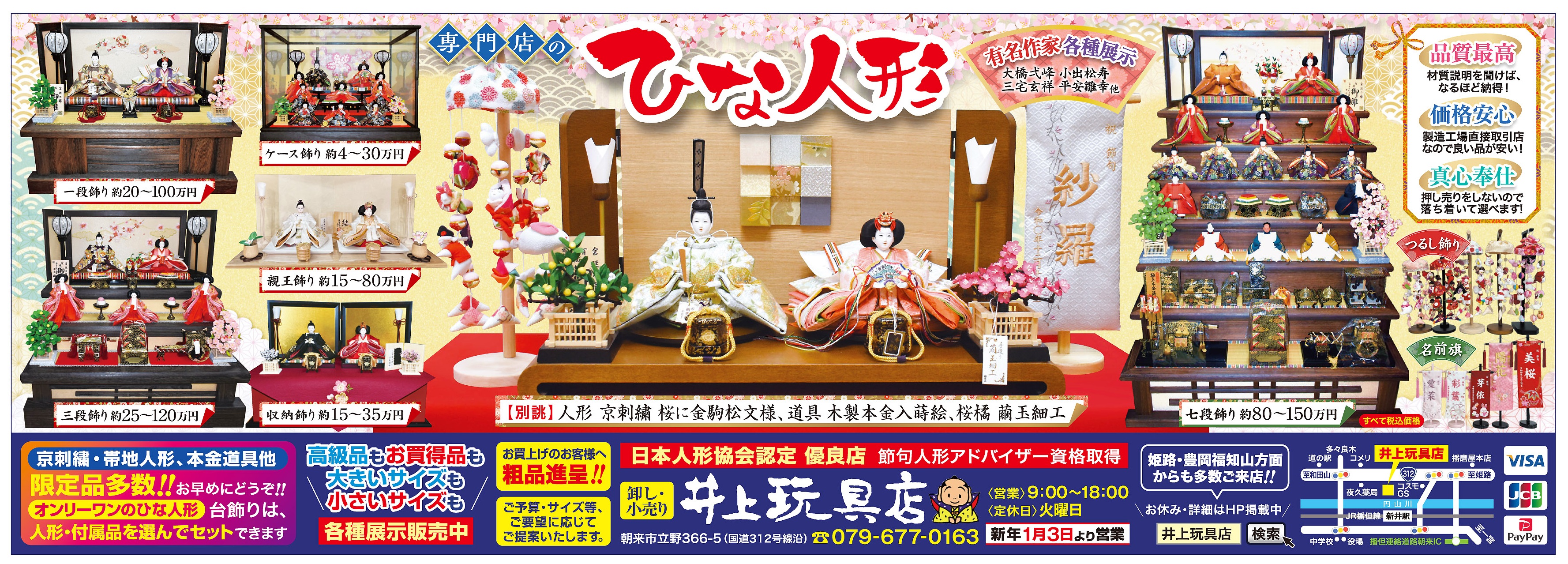 井上オリジナル 別誂ひな人形たくさん展示しています。見る価値あり!!。