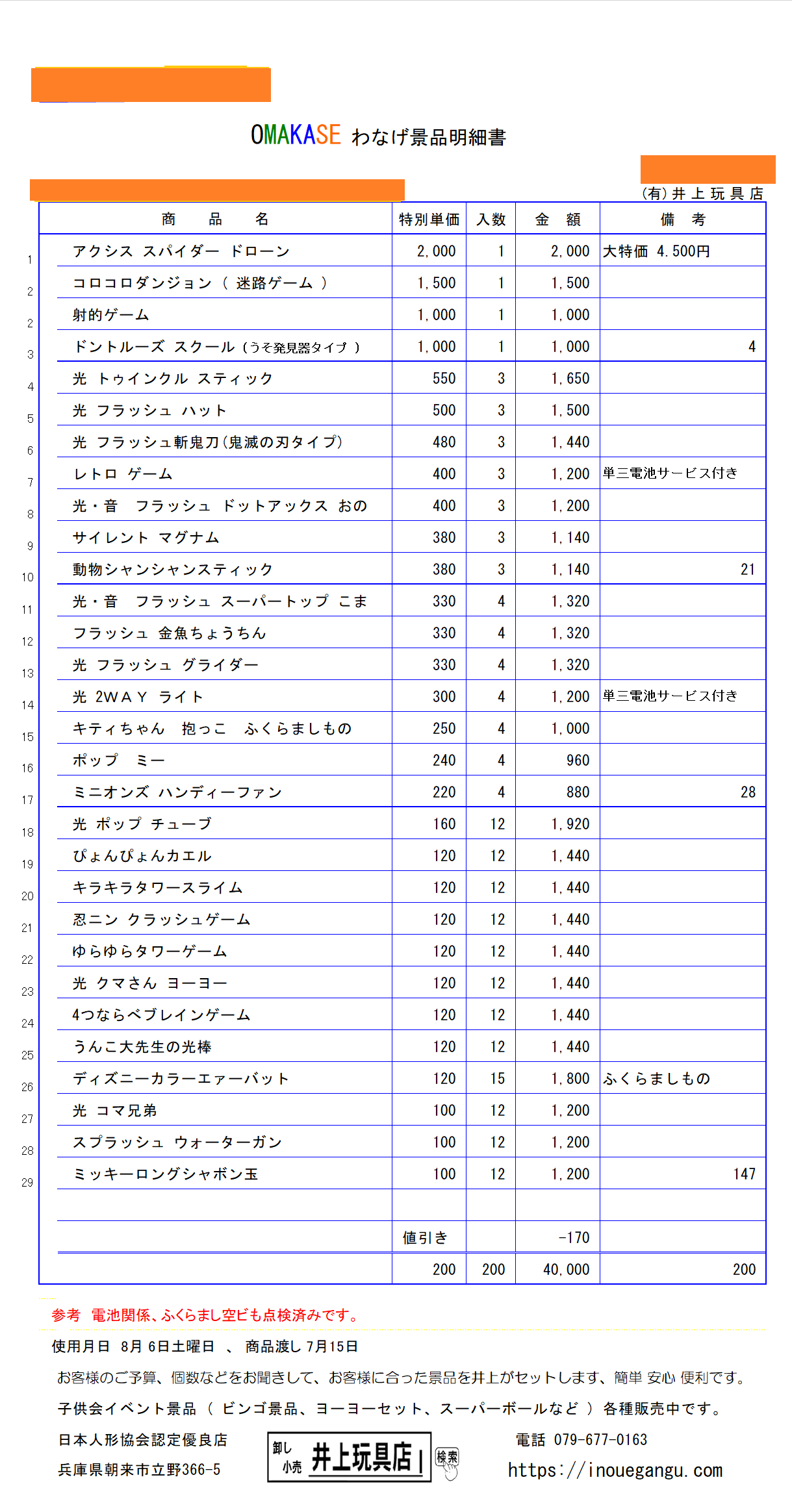 | これが井玩のomakase setです、どうです、すごくないですか。豪華景品が安くて注文簡単ですよ。よろしくおねがいますね | |||||||||