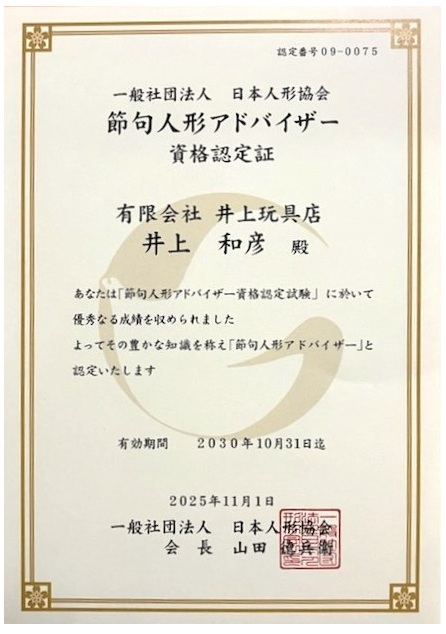 節句人形アドバイザー資格取得